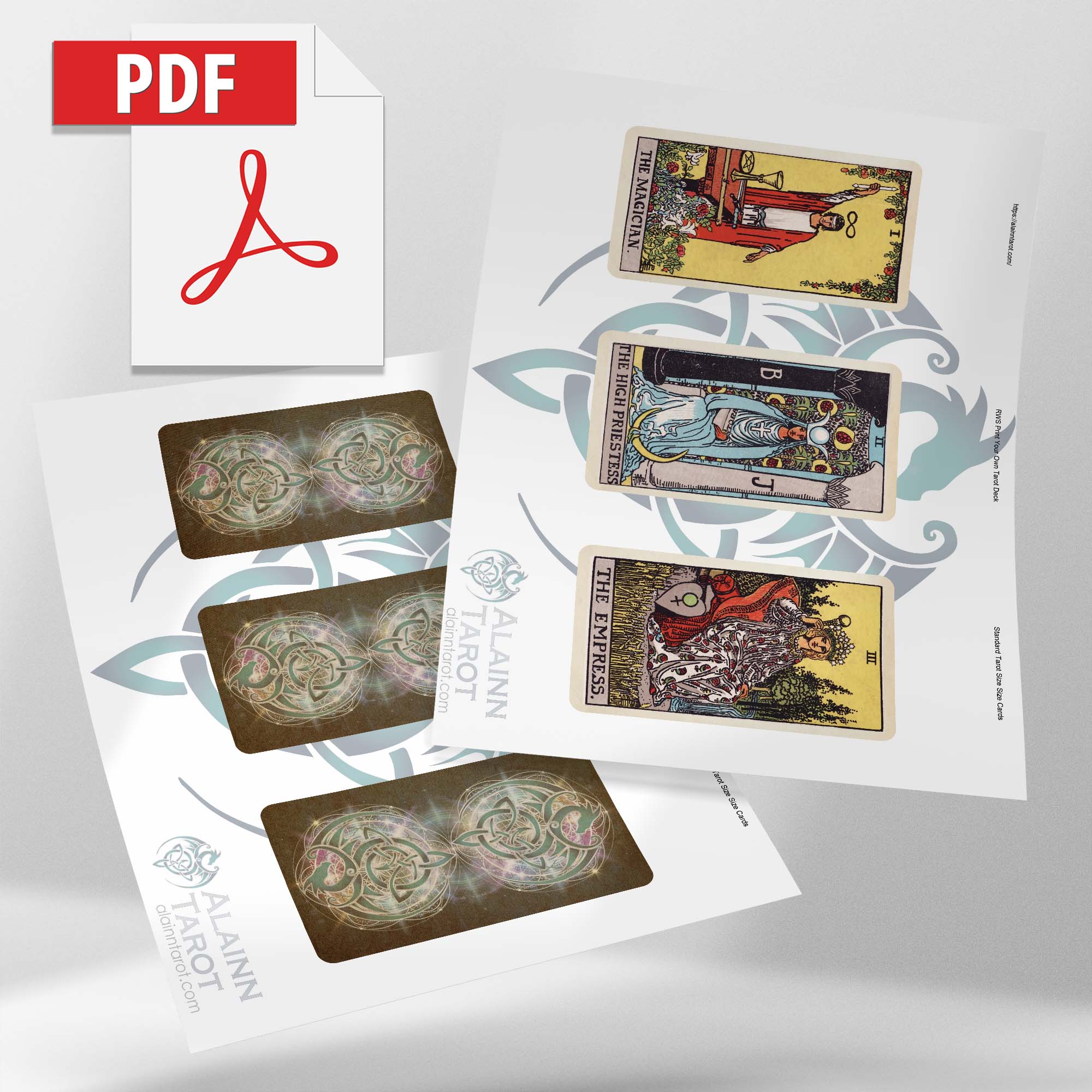 *while Witches’ and Elder Futhark are different sets of runes, (just as English and Gaelic are different languages) I use mine together; my rune casts are “bilingual”. I have made the same choice in my online rune layouts. Alainn Tarot interactive includes both sets at the same time.